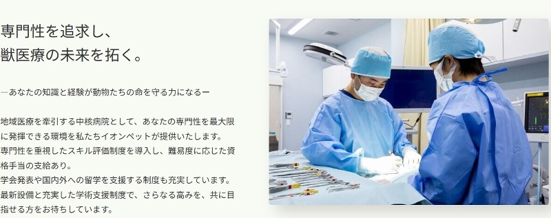 私たちイオンペットでは、『最高の小動物医療を届ける』とミッションに掲げ、一次診療施設のクリニックと地域の中核病院に当たる医療センターのそれぞれが独自の役割を持ちながら、飼い主さまと動物たちに寄り添った診療を行っています。