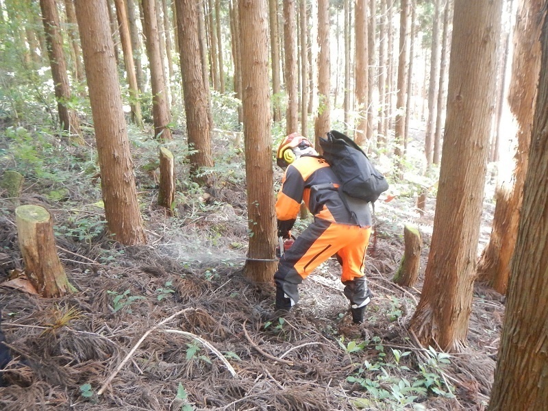 ・チェンソー等によるスギ、ヒノキの伐採