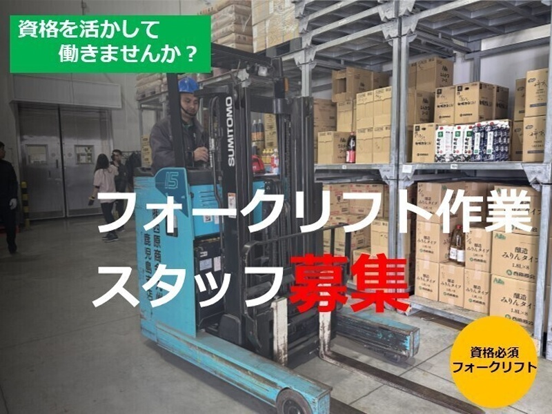 ※フォークリフトを使用しますので、免許をお持ちの方大歓迎です!