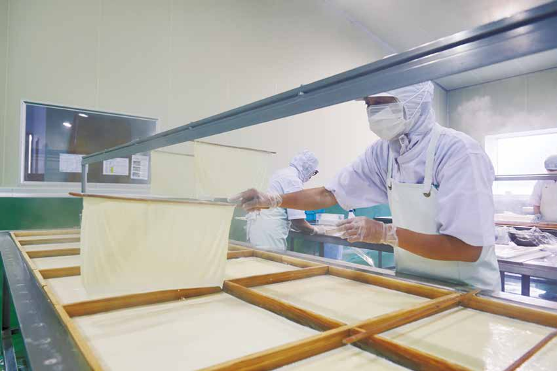国内最大級のゆば製造工場であり、新技術の導入で、
