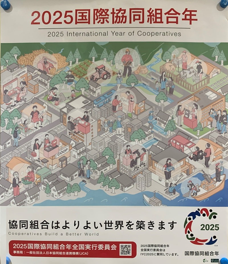 国連は、持続可能な生産と消費、食料安全保障、気候変動対策、地域の人々への医療・福祉、働きがいのある人間らしい仕事の創出、すべての人が参加できる社会づくりなど、さまざまな分野で持続可能な開発目標(SDGs)に貢献している協同組合を評価し、その認知の向上と協同組合の振興のために、2025年を国際協同組合年(International Year of Cooperetives:IYC)に定めました。