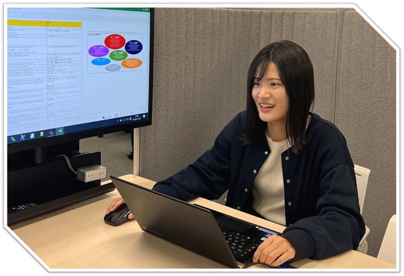 そもそもIT業界を選んだ理由は、文系でも専門的なスキルを身に付けられる点に魅力を感じたからです。中でも当社は、福利厚生の手厚さから社員を大切にしている会社だなと思い、会社説明会の座談会で感じた雰囲気にも惹かれて入社を決意しました。座談会を経て感じたのは、就活生に対して自分の会社を良く見せようと取り繕ったり、絶対入社してほしいとグイグイ圧をかける様子が全くなく、自然体で接して下さったこと。「自分が入りたいと思った企業に入社すれば良い」と私自身の気持ちを大事にして下さり、どんな質問に対しても素直にリアルを答えてくれる様子が好印象でした。ここでなら頑張れる、自分らしく働けると思い、入社を決意しました。