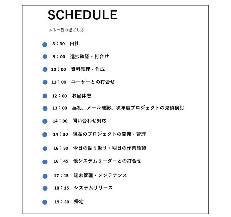 私としては、以前から、システムを使う現場の人と密接に関りながらシステム開発をしていくスペシャリストより、マネジメントをやってみたいという思いが強くありました。 今プロジェクトリーダーとしてチームをまとめる役割も担っているので、なりたい姿にはなれたのかなと思います。実際に教育する立場にもなりました。 プラスで挑戦したいことであれば、今扱っているシステムのことしか知らないので、それ以外のシステムの知識を身に付けたいです。そして、今より大規模な人数が携わる大きなプロジェクトを、上手く円滑に回せるプロジェクトリーダーになりたいですね。