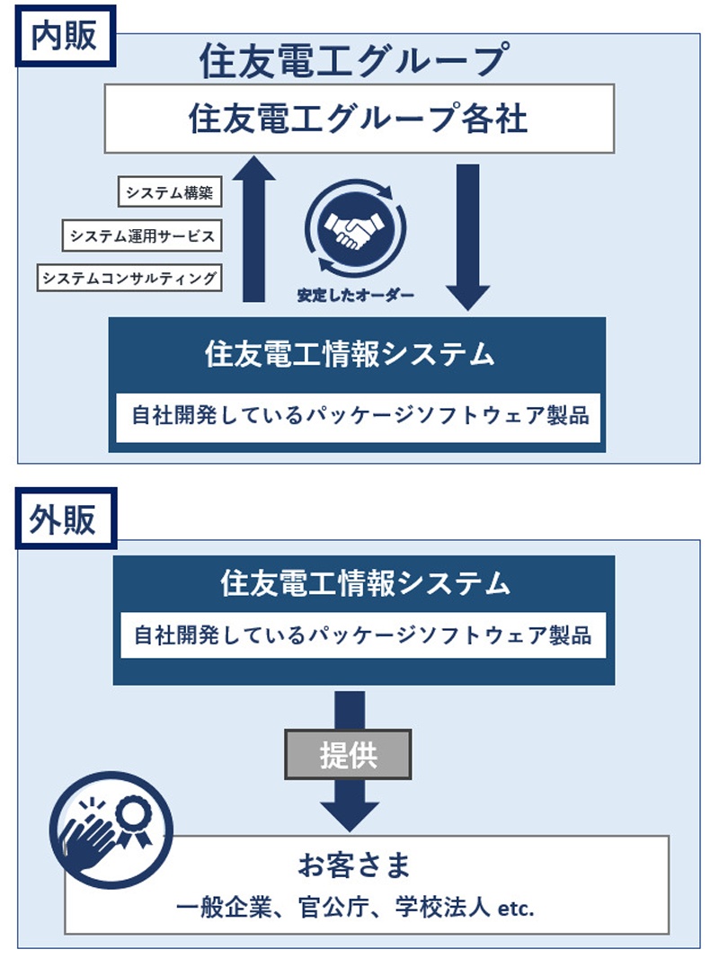 世界で活躍する住友電工グループ各社から、システムのコンサルティングやシステム構築、運用サービスなどのオーダーが安定して入ってくるのは、当社の大きな強みです。一方で、そこで培ってきた技術力を用いて高品質のパッケージソフトを自社開発しグループ外のお客さまに提供しています。この2つの事業を展開するビジネスモデルにより、安定した収益を確保しています。