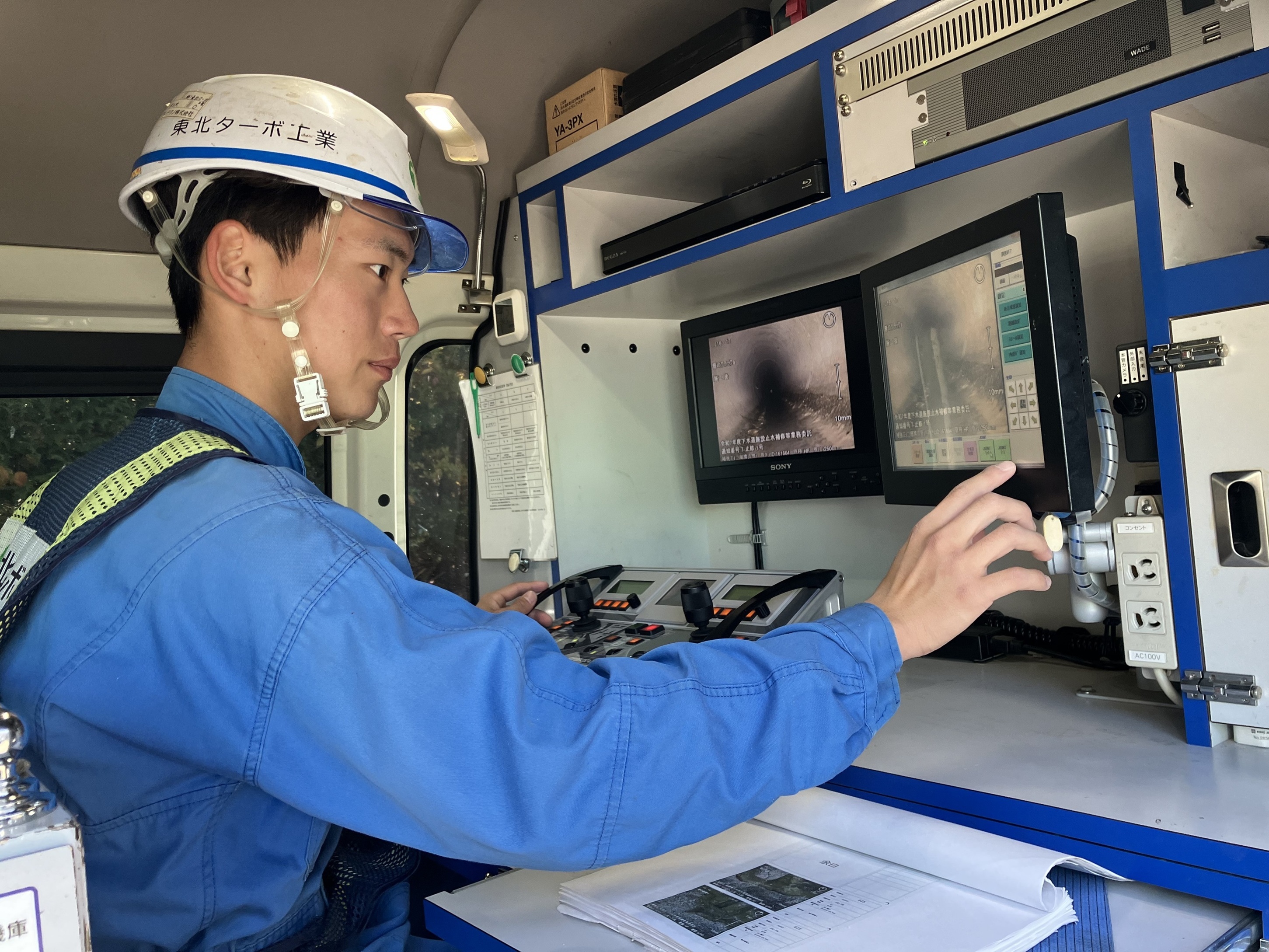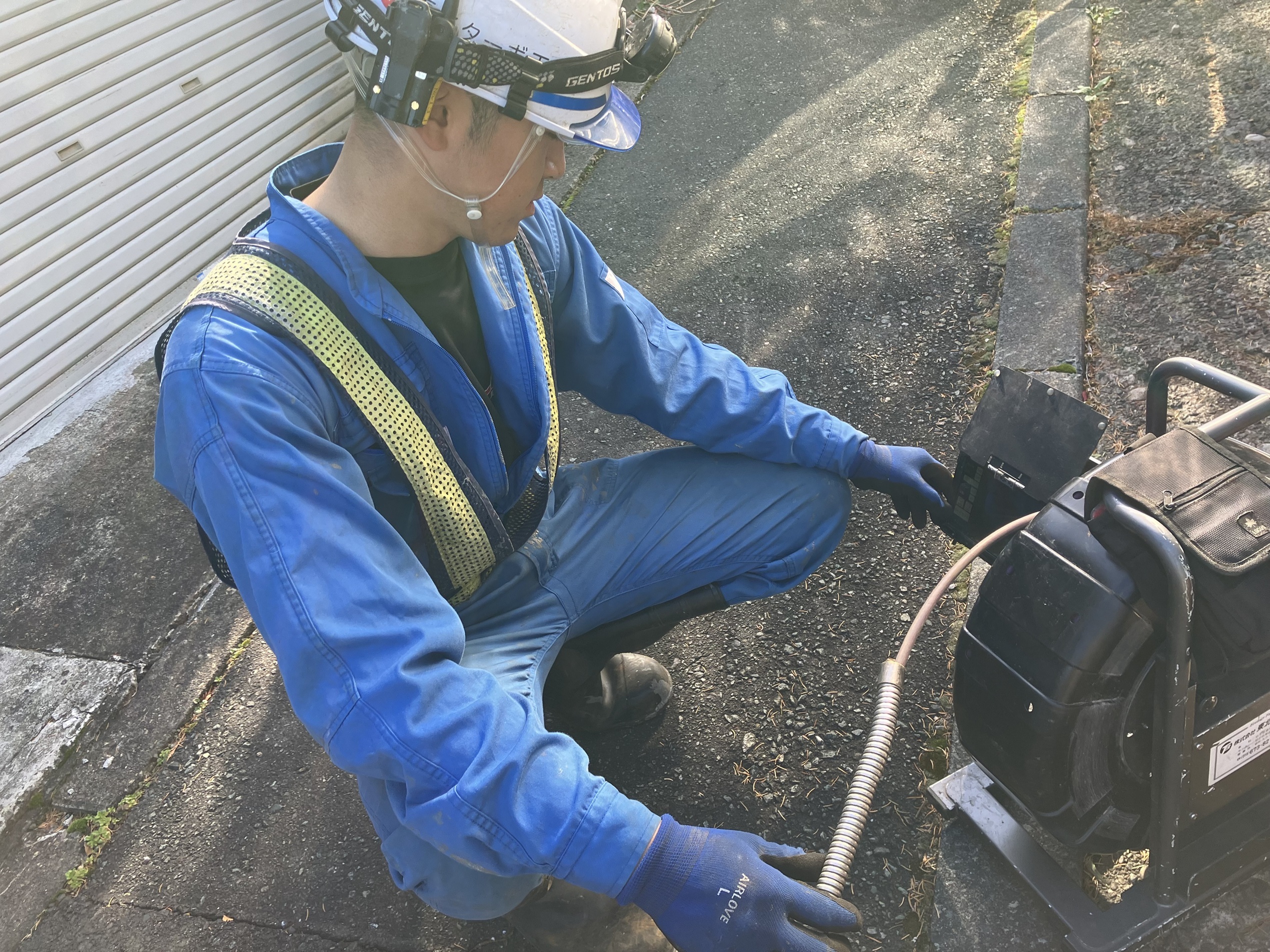 (阿部)先日まで川倉さんと同じ現場に入っていましたが、現在は、盛岡市下水道の中の洗浄の現場に入っています。他にも年間通して、道路の側溝の洗浄やガソリンスタンド等の分離槽の吸引、下水道管の部分補修、本管を構成するFFT(管きょをリニューアルする工法)をしています。