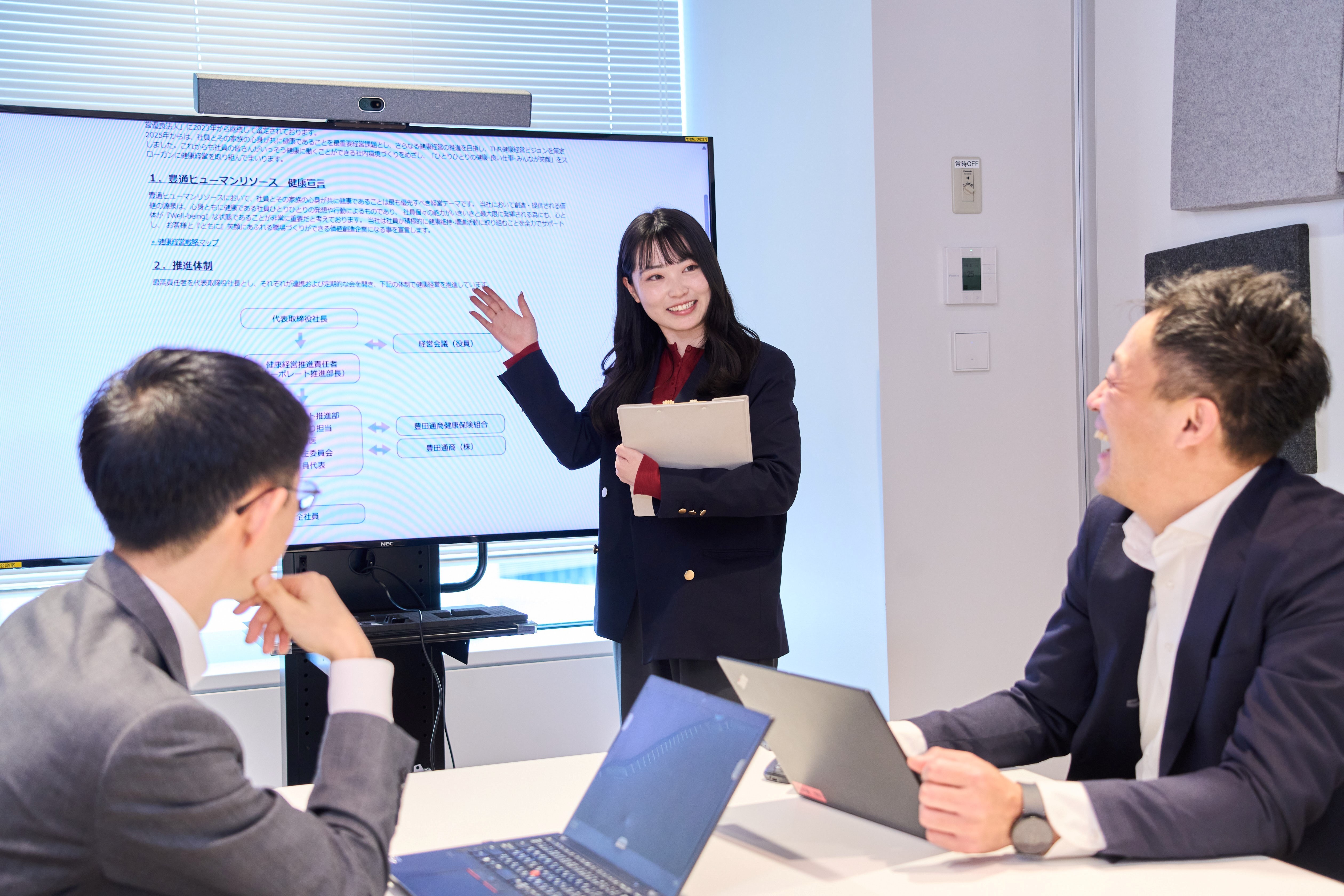 私が所属する部署は、豊田通商向けの育成施策を企画・運営する役割を担っており、その中で私は語学力向上施策と自己啓発を促進する自律的学習支援をメインに担当しています。当社には、挑戦的な仕事を信頼して任せてくれる文化があり、若いうちからさまざまなチャレンジができる点が大きな魅力です。入社直後には、自律的学習支援の仕組み改善を任せていただき、“学びたい”という人を増やすきっかけづくりを、主体的に考えながら進める経験を積むことができました。また、チームで協力しながらゴールを目指す風土があるため、新しい挑戦を前向きに楽しめる環境だと感じています。