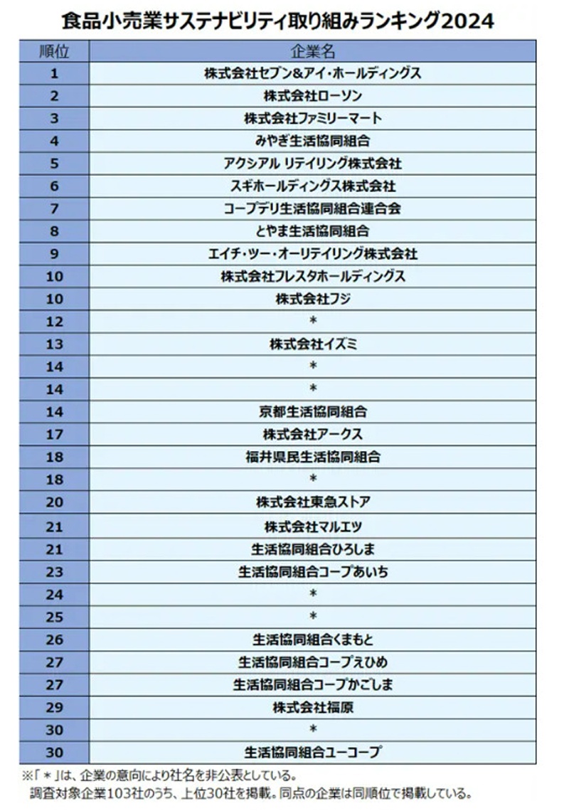 「食品小売業のサステナビリティ取り組みランキング2024」第4位!